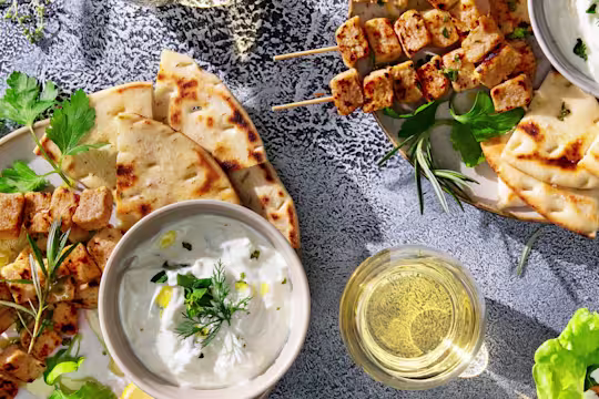 - Once ready to serve, share on a table for guests to assemble their Souvlakis